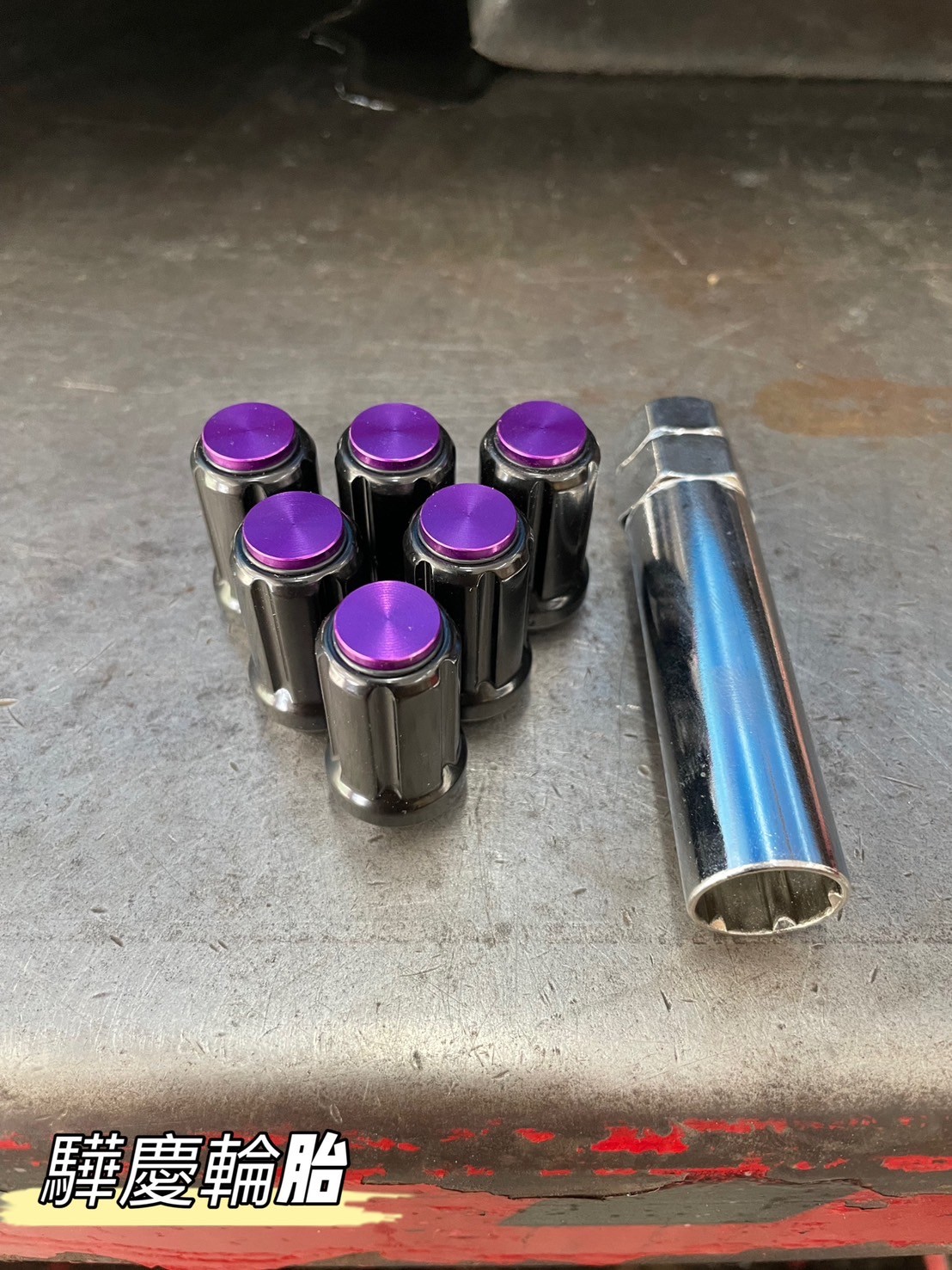 防盜螺帽 黑底紫頂 1.25、1.5牙 附防盜套筒 台製高品質