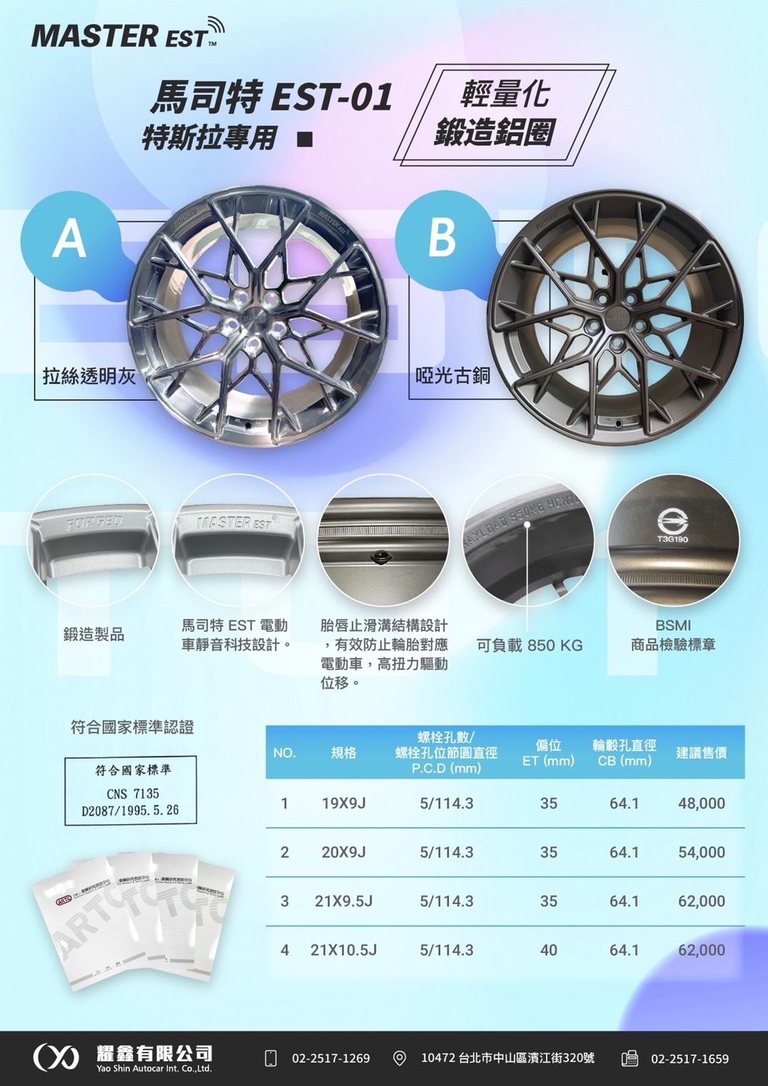 馬司特 EST-01 輕量化鍛造鋁圈 19吋